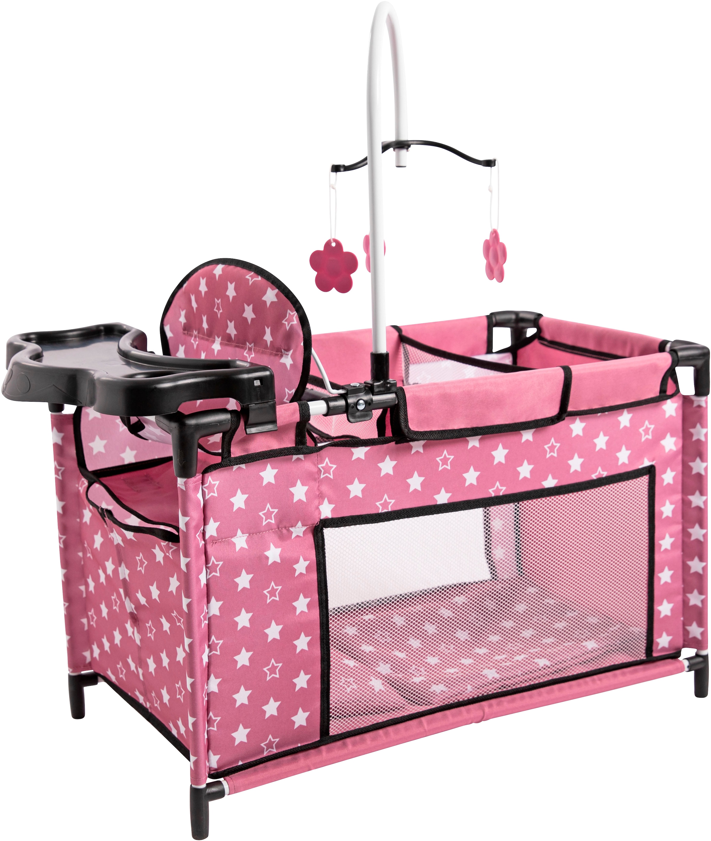 Bayer Puppenbett "Multibett" mit integriertem Hochstuhl, Wickelablage und Mobile