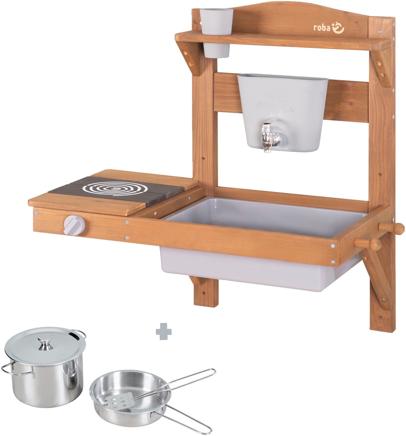 Roba roba Outdoor-Spielküche "Matschküche zum Hängen, teakholzfarben lasiert, aus Holz"