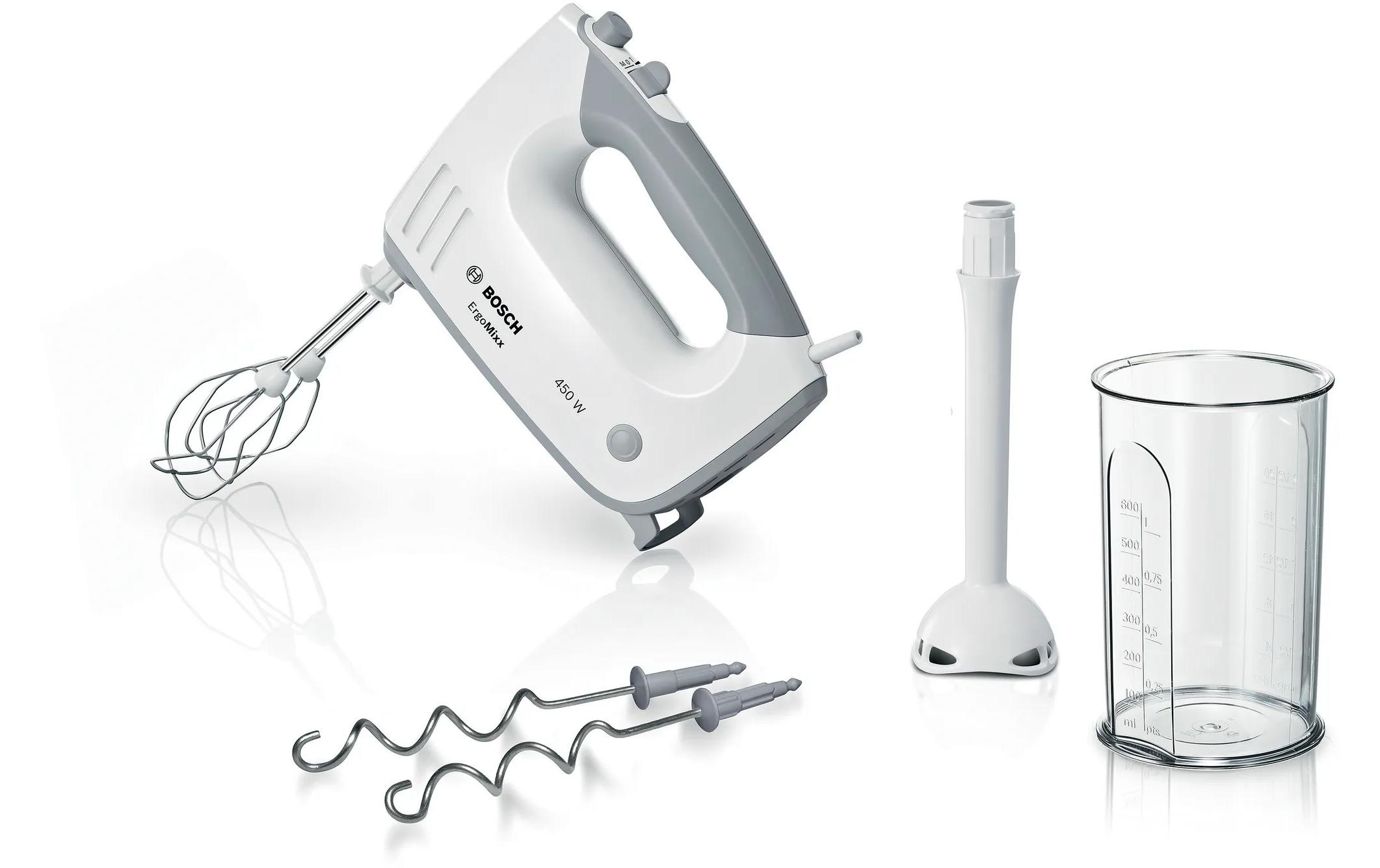 Bosch BOSCH Handmixer "ErgoMixx MFQ36440, Edelst. Rührbesen/Knethaken, 5 Stufen, Mixfuss, weiss" 450 W Mixbecher, ergonom. Soft-Touch-Griff, Made in Europe