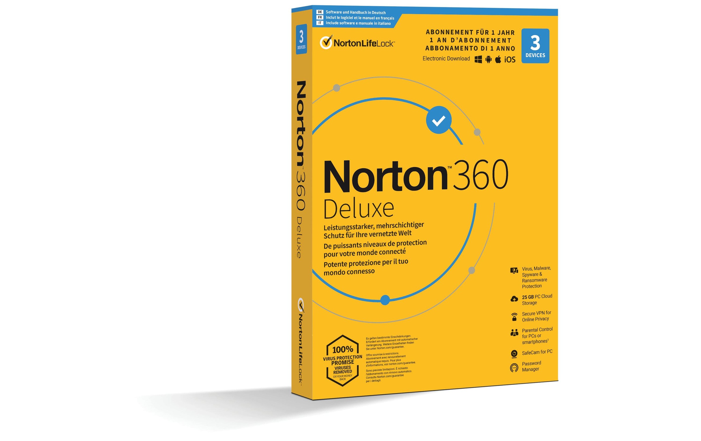Norton Virensoftware "360 Deluxe Box, 3 Device, 1" (Virenprogramm Lizenzschlüssel)