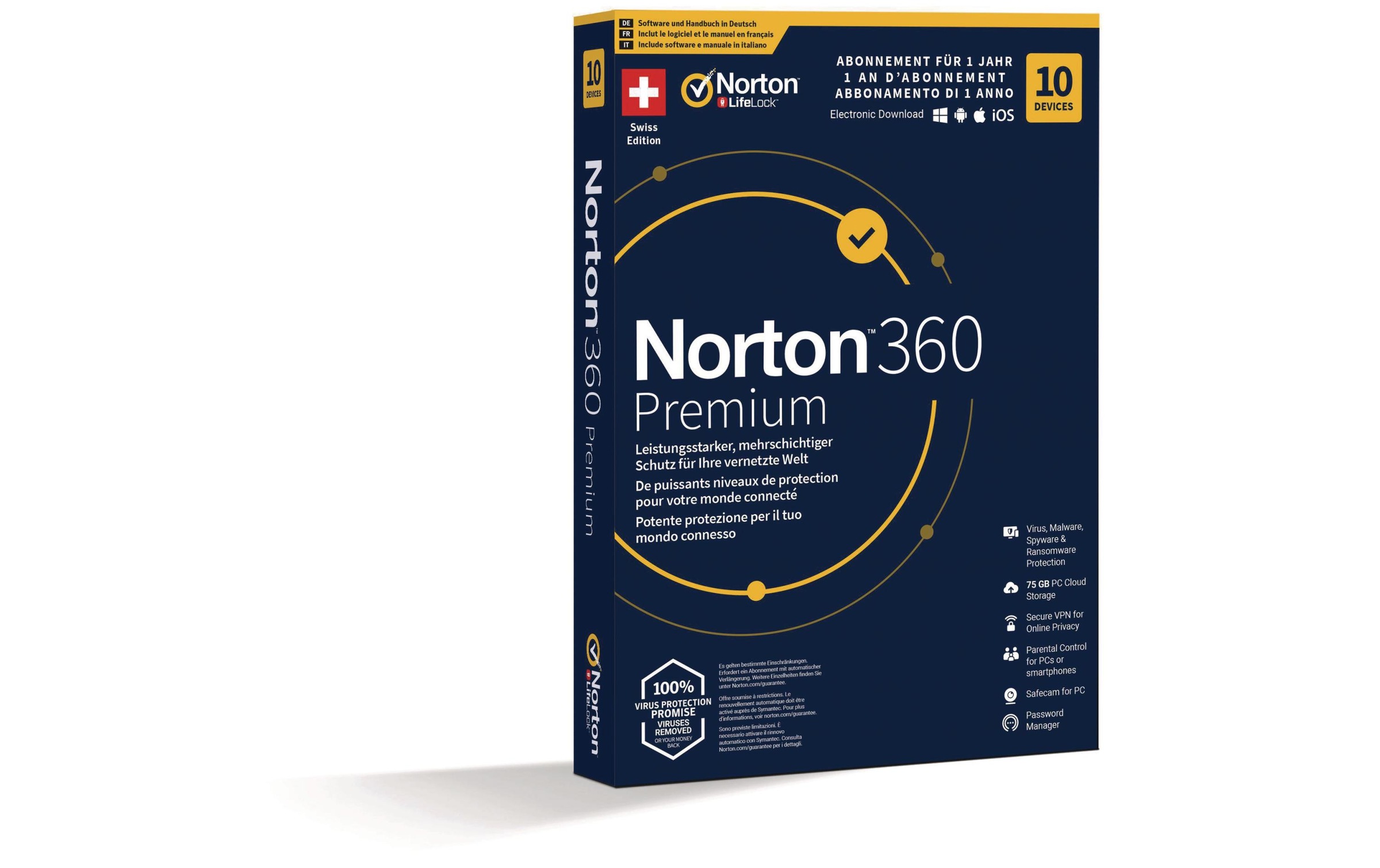 Norton Virensoftware "Norton 360 Premium Box, 10 Device, 1 Jahr" ( Lizenzschlüssel)