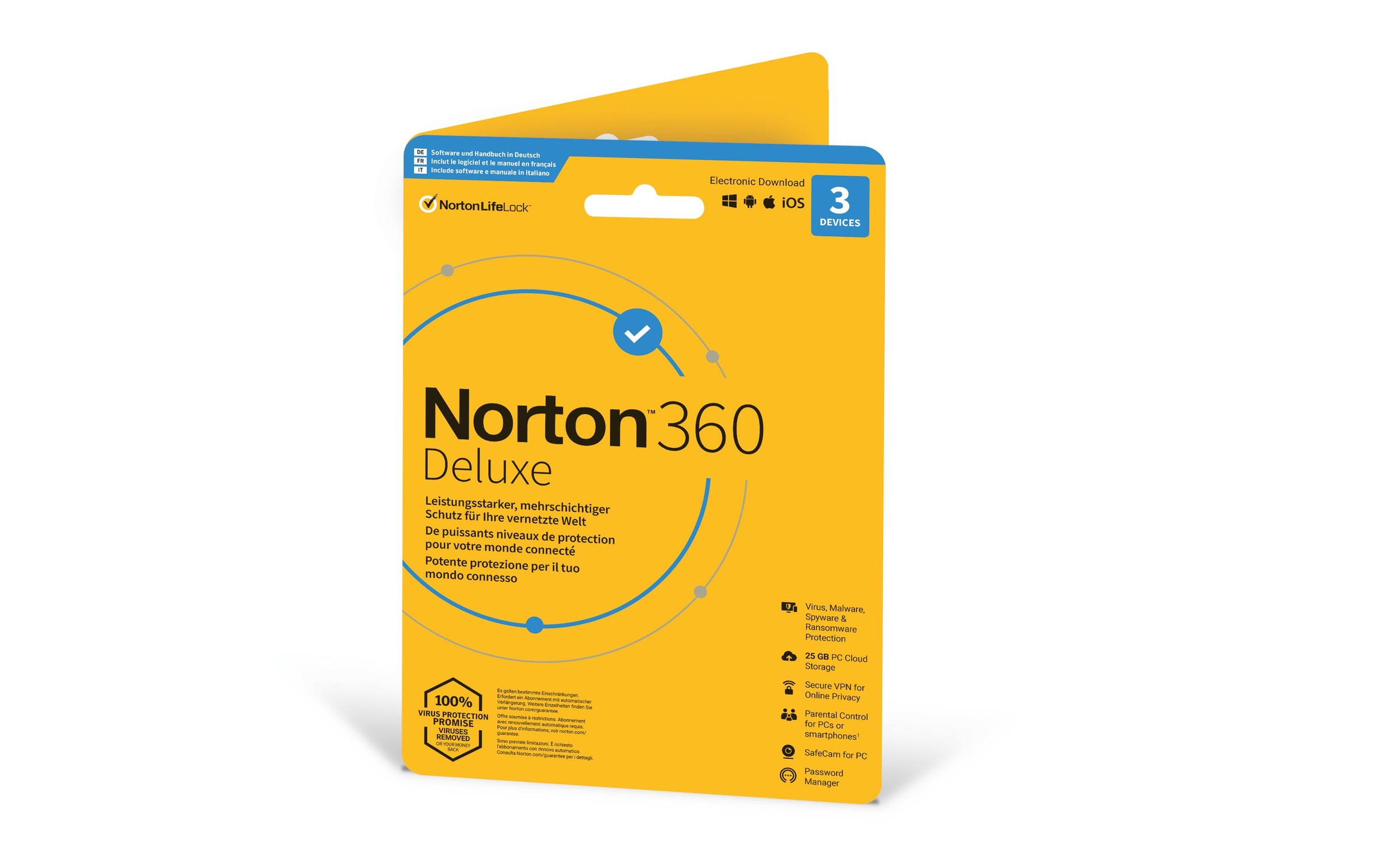 Norton Virensoftware "360 Deluxe Sleeve, 3 Device," (Virenprogramm Lizenzschlüssel)