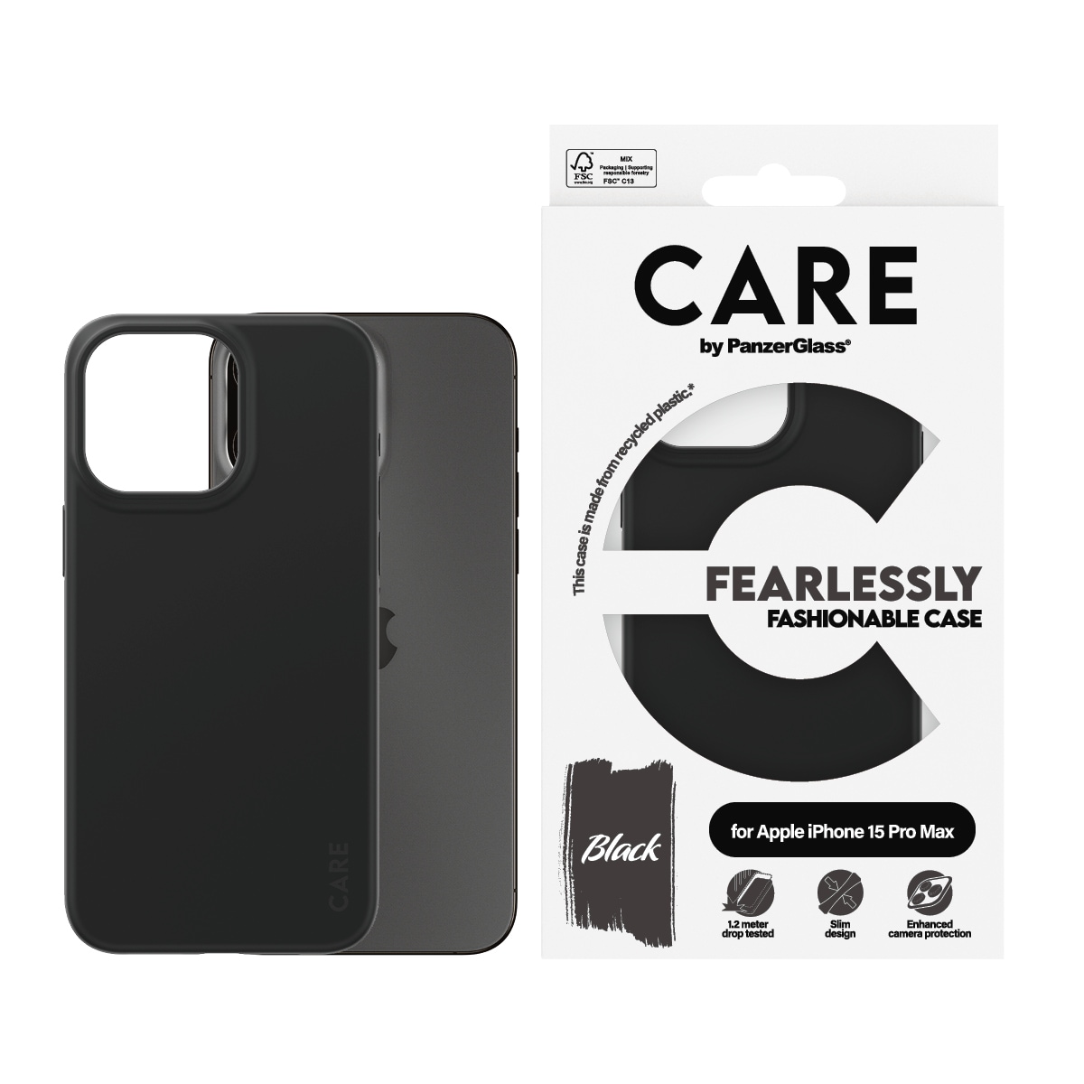 Care By Panzerglass CARE by PanzerGlass Handyhülle "Fearlessly Fashionable Case für Apple iPhone 15 Pro Max Fashion Black" Backcover, Schutzhülle, Handyschutzhülle, Case, Schutzcase, stossfest